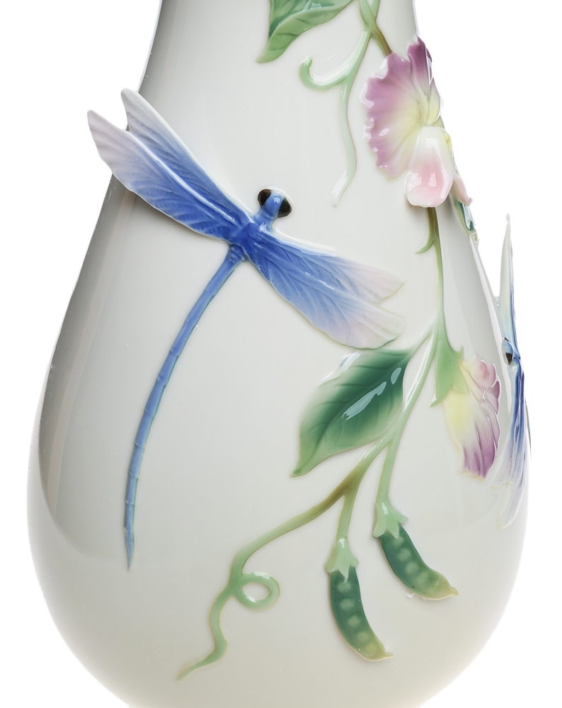 Ваза интерьерная "Стрекозы и душистый горошек". Фарфор, роспись, лепка, ручная работа. Высота 41 см. Graff porcelain, Великобритания, 2000-е гг.