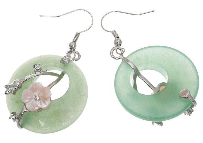 Натуральный нефрит, перламутр, стразы, бижутерный сплав серебряного тона.