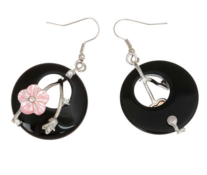 Натуральный агат, перламутр, стразы, бижутерный сплав серебряного тона.