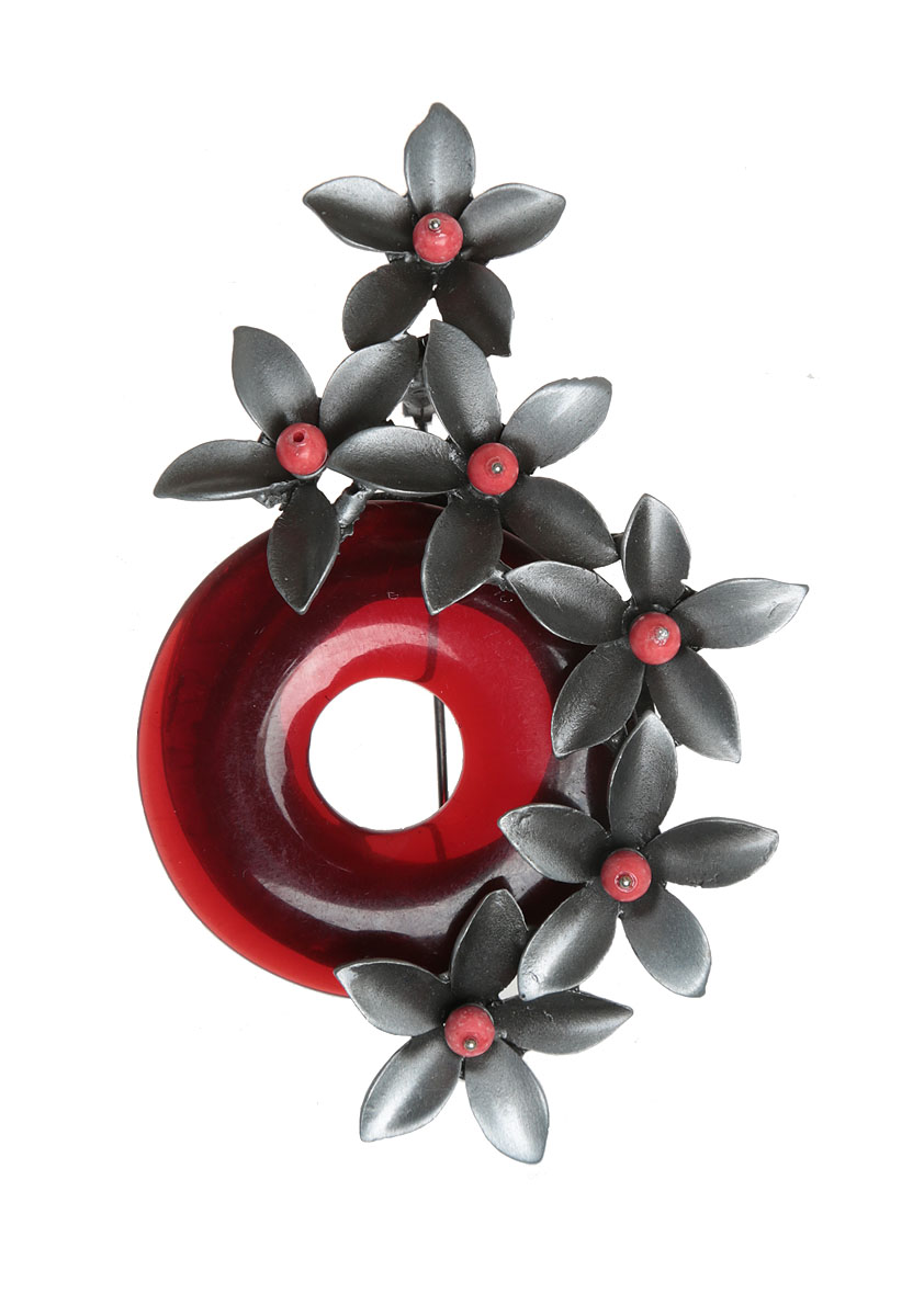 Брошь-кулон "Сердоликовый венок" от D.Mari. Ювелирный акрил, бижутерный сплав серебряного тона. Гонконг