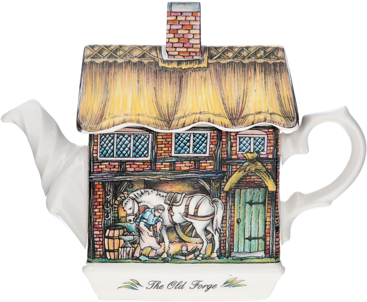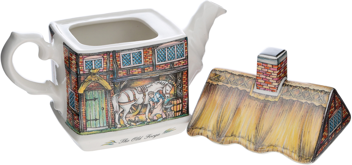 Чайник заварочный коллекционный "Старая кузница". Фарфор, деколь. Sadler, Великобритания, 1980-е гг.