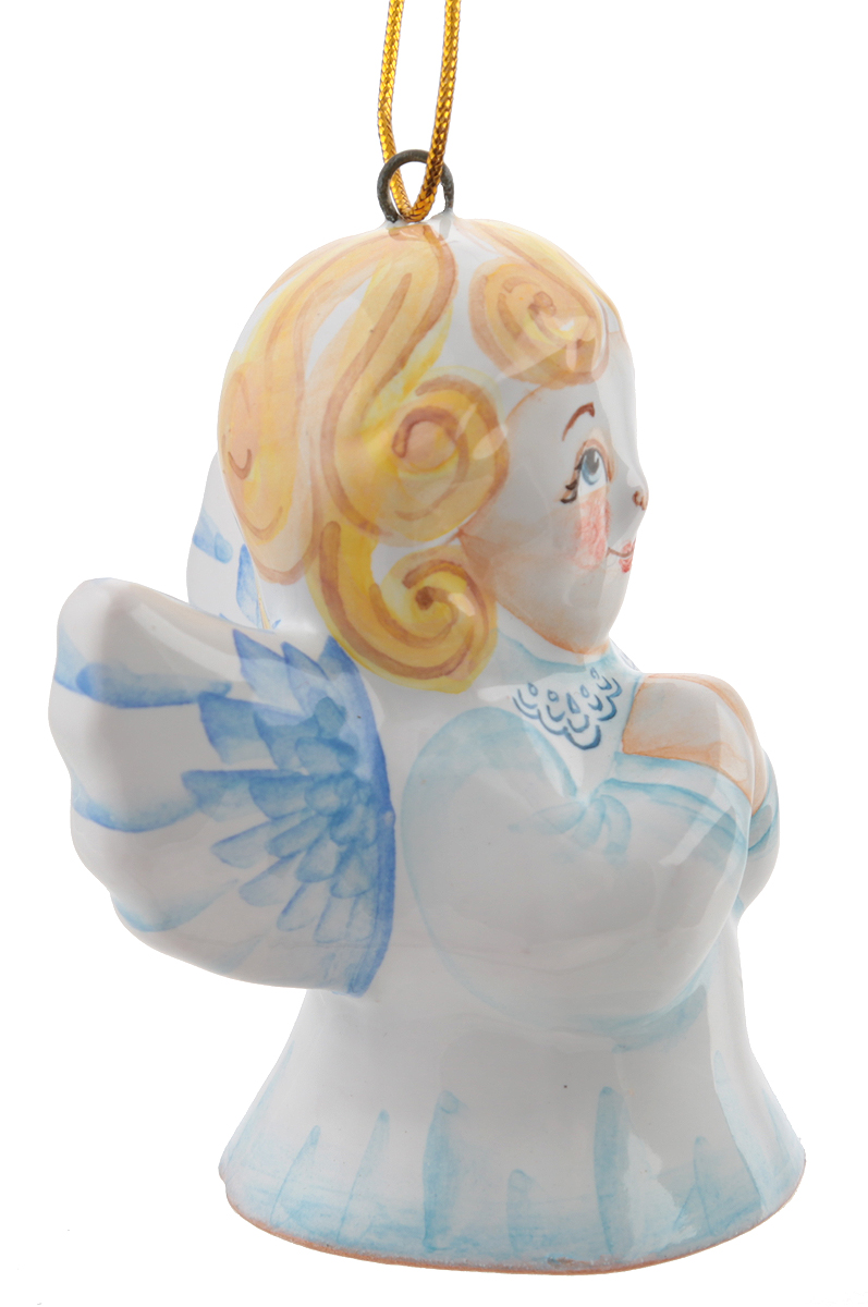 Елочная игрушка-колокольчик "Ангел-хранитель". Майолика, роспись, лак, ручная работа. Maiolica Trifecta, Ярославль, Россия