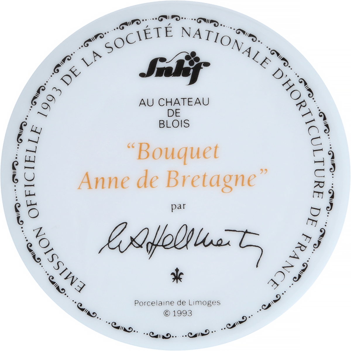 "Букет Энн-де-Бретань", декоративная тарелка. Фарфор, деколь, золочение. Limoges, Франция, 1993 год