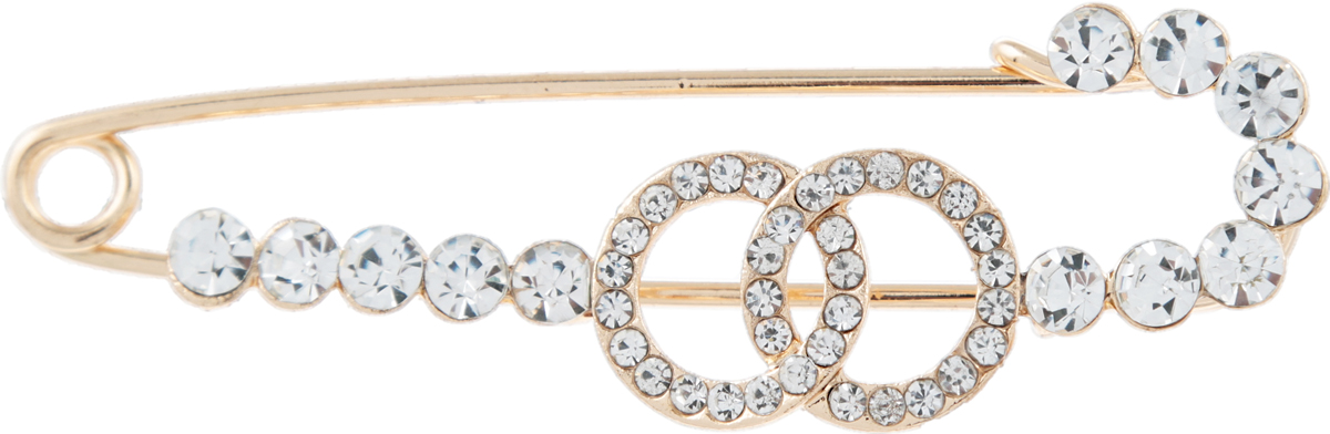 Брошь-булавка для платка "Париж" от D.Mari. Прозрачные кристаллы и стразы, бижутерный сплав золотого тона. Гонконг