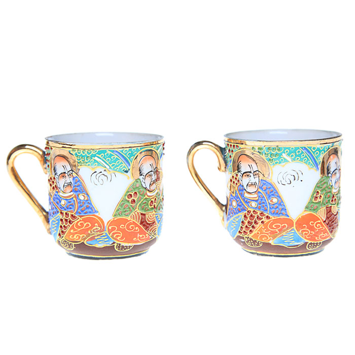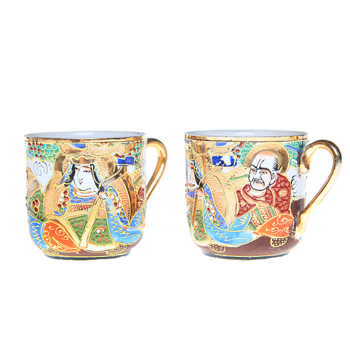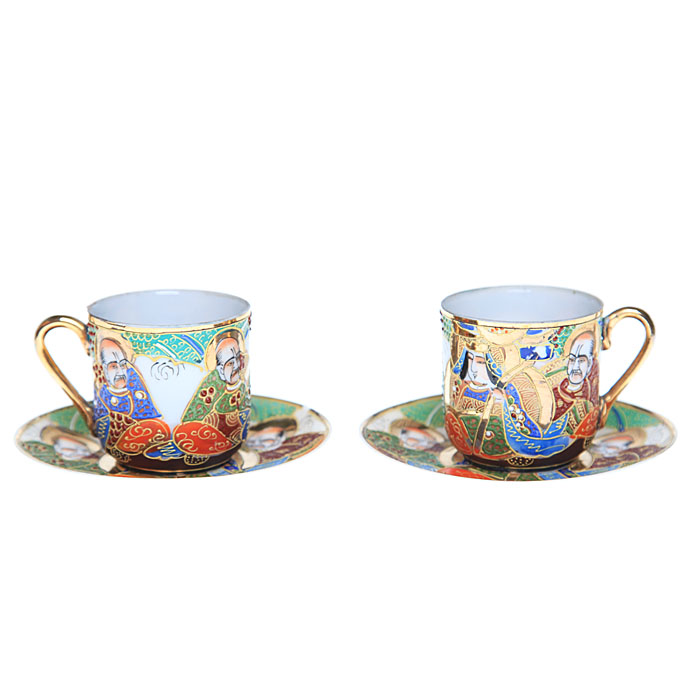 Две кофейные пары в стиле мориаж, тонкий костяной фарфор, ручная роспись и золочение. Satsuma, Япония, первая половина ХХ века.