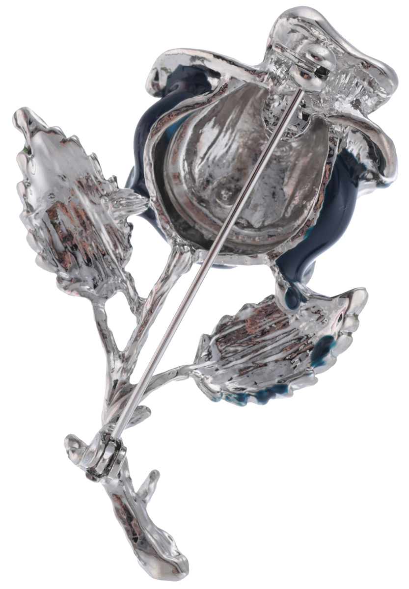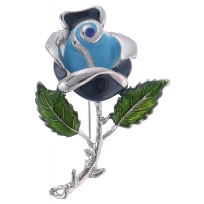 Брошь "Голубая роза" от Arrina. Цветные эмали, страз синего цвета, бижутерный сплав серебряного тона. Гонконг
