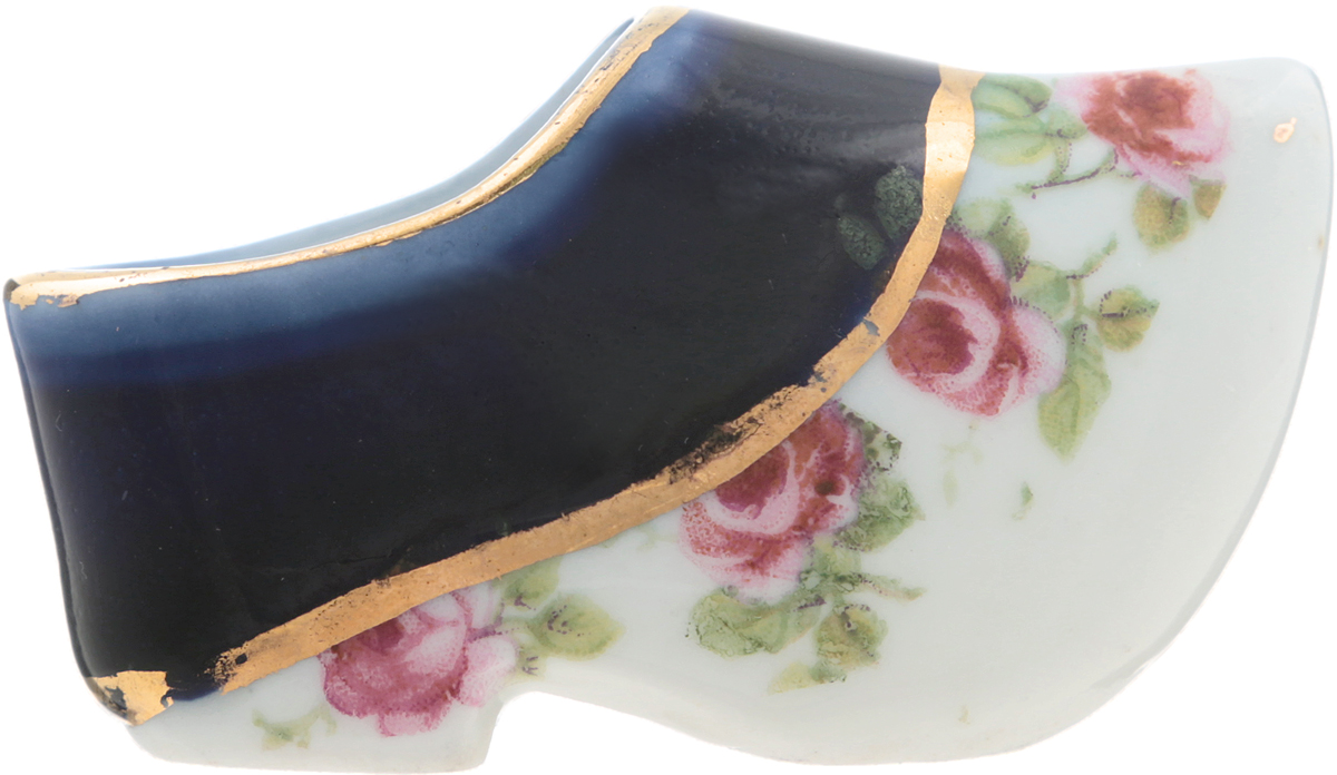 Миниатюрный декоративный голландский башмачок. Фарфор, деколь, золочение. Западная Европа, 1980-е гг.