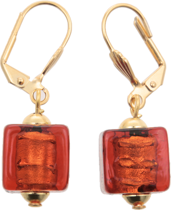 Серьги "Медовые". Муранское стекло, бижутерный сплав золотого тона, ручная работа. Murano, Италия (Венеция)