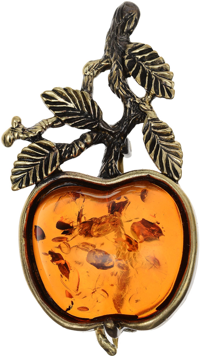 Брошь "Наливное яблочко". Янтарь, латунь. Россия, Калининград