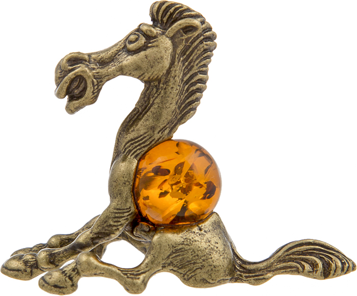 Сувенир миниатюрный "Лошадь Юлий". Янтарь, латунь. Россия, Калининград
