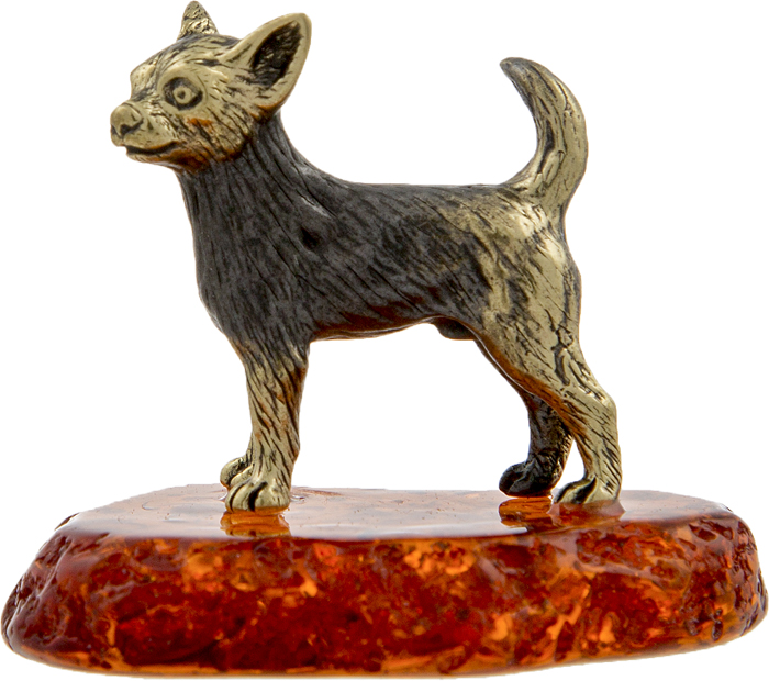 Сувенир миниатюрный "Чихуахуа Джеси". Янтарь, латунь. Россия, Калининград