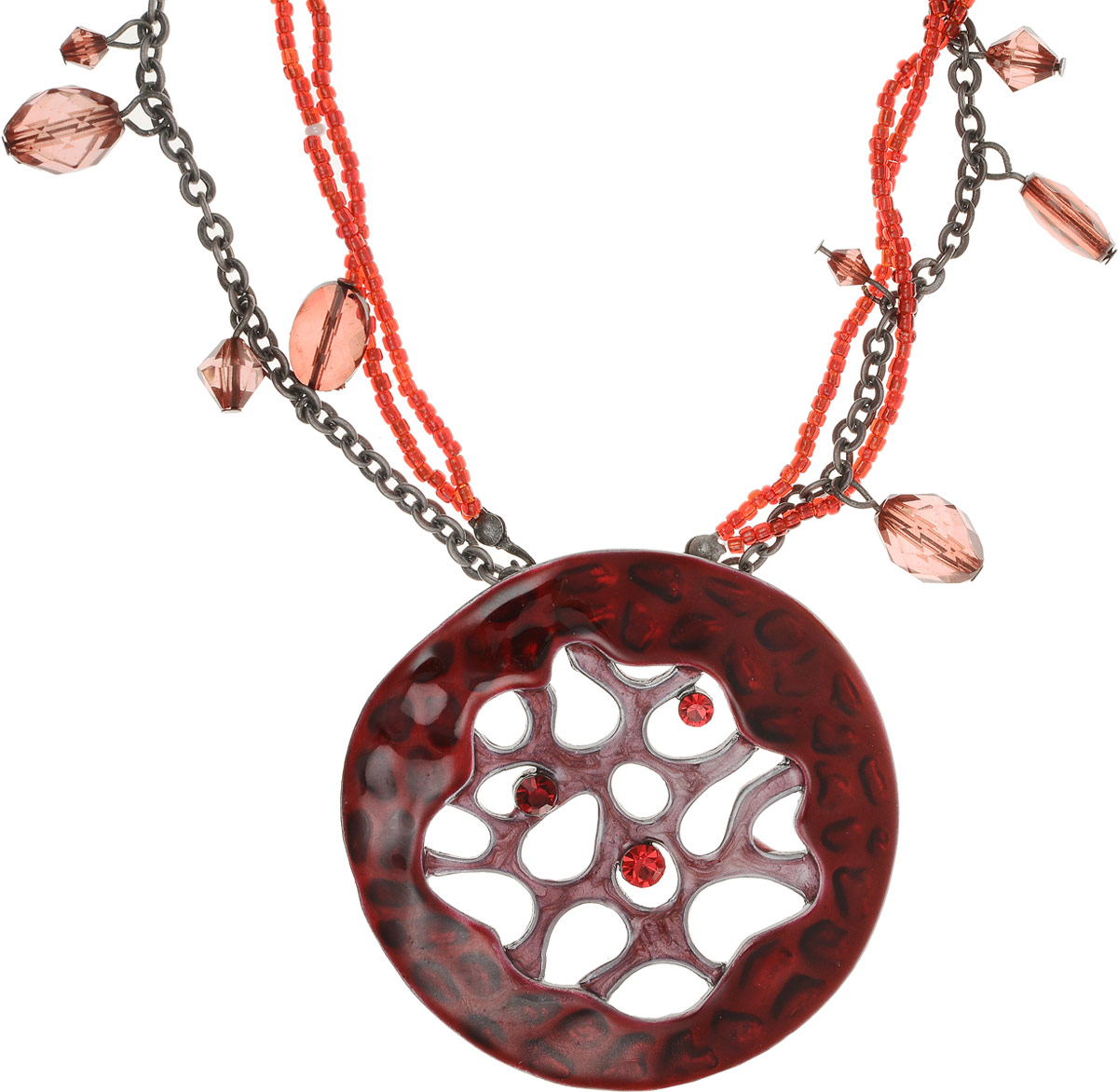 Комплект "Сочный гранат": колье и серьги. Цветная эмаль, бисер, бусины, кристаллы рубинового цвета, гипоаллергенный ювелирный сплав. Lisa Lone, Испания