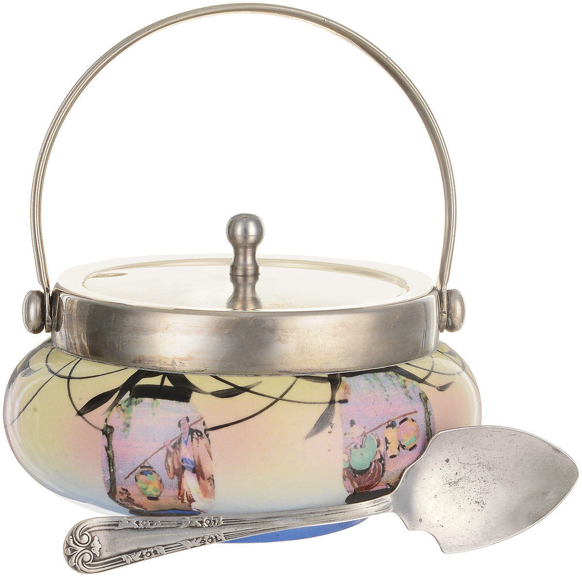 Вазочка для джема или варенья . Фарфор, роспись, металл, серебрение. Великобритания, первая половина ХХ века