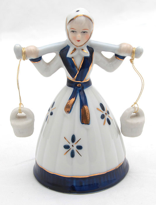 Колокольчик "Девушка с ведрами". Фарфор, роспись, золочение. Западная Европа, вторая половина ХХ века