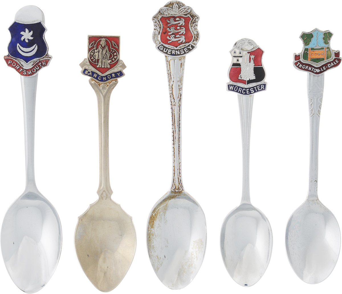 Набор сувенирных ложек, 5 штук. Металл серебряного тона, 1980 г.