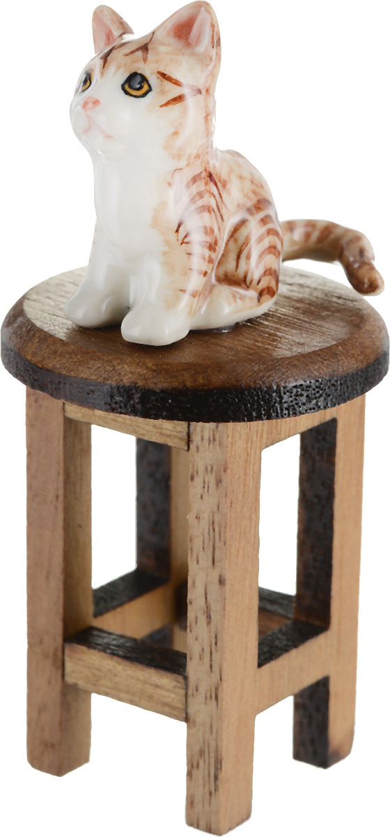 Статуэтка миниатюрная "Котенок на табуретке". Фарфор, роспись, ручная работа. Высота 7 см. Таиланд