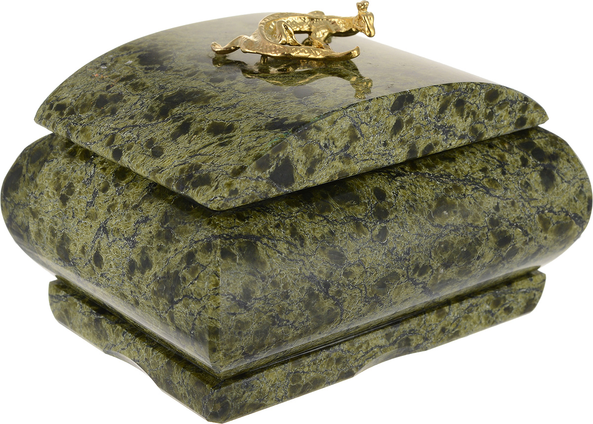 Шкатулка для мелочей. Натуральный змеевик, латунь, ручная работа. Россия
