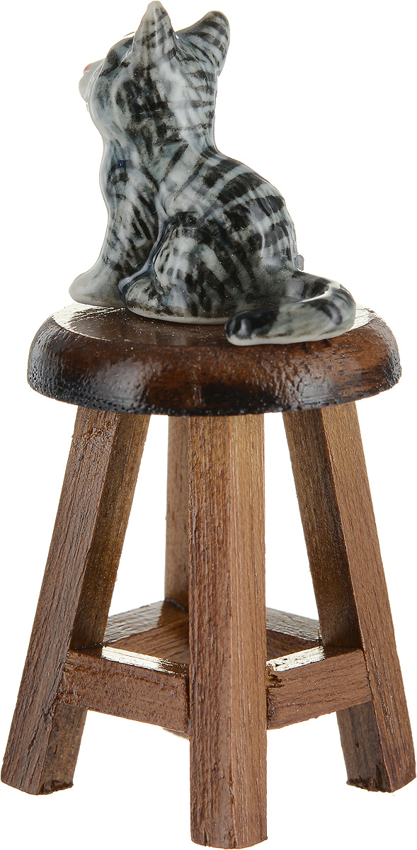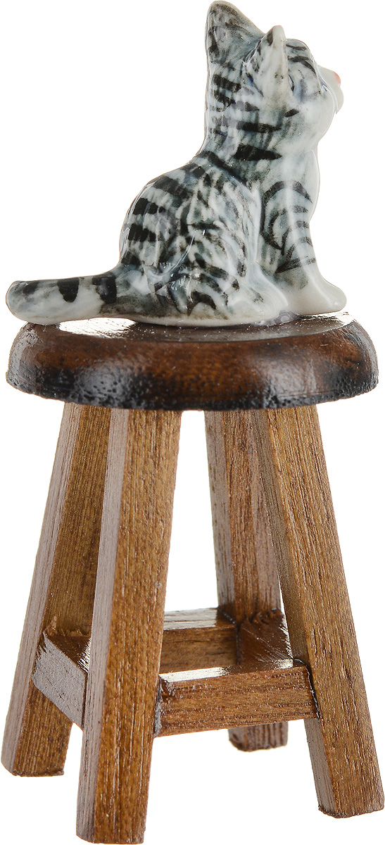 Статуэтка миниатюрная "Котенок на табуретке". Фарфор, роспись, ручная работа. Высота 7 см. Таиланд