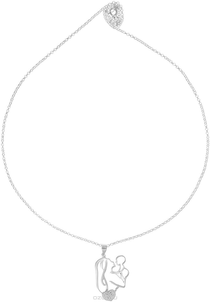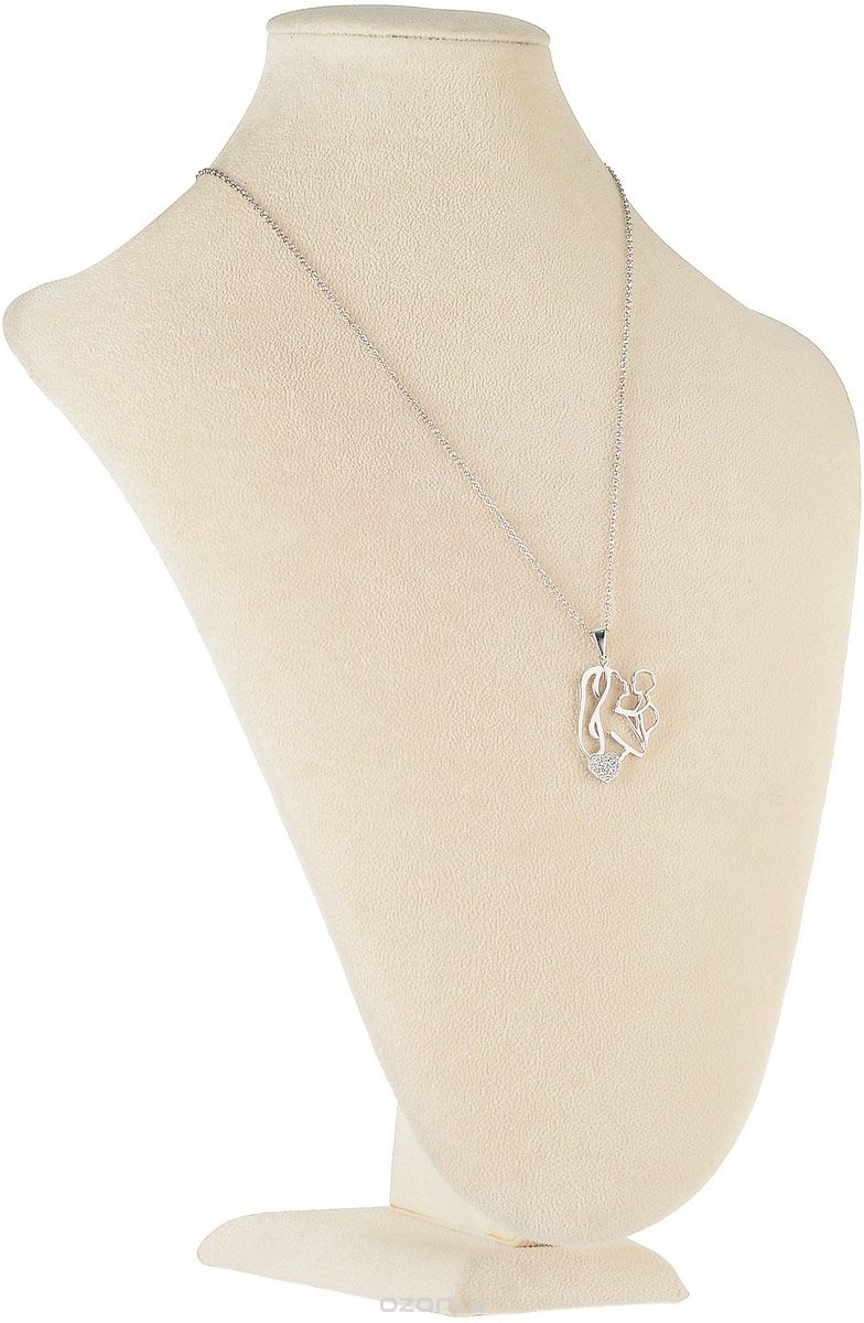 Кулон на цепочке "Адель" от Arrina. Циркон, бижутерный сплав, серебрение. Гонконг