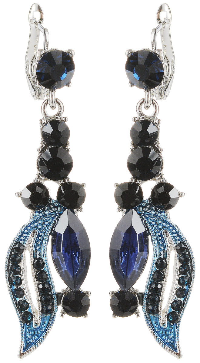 Кисталлы и стразы сапфирового цвета, бижутерный сплав серебряного тона.