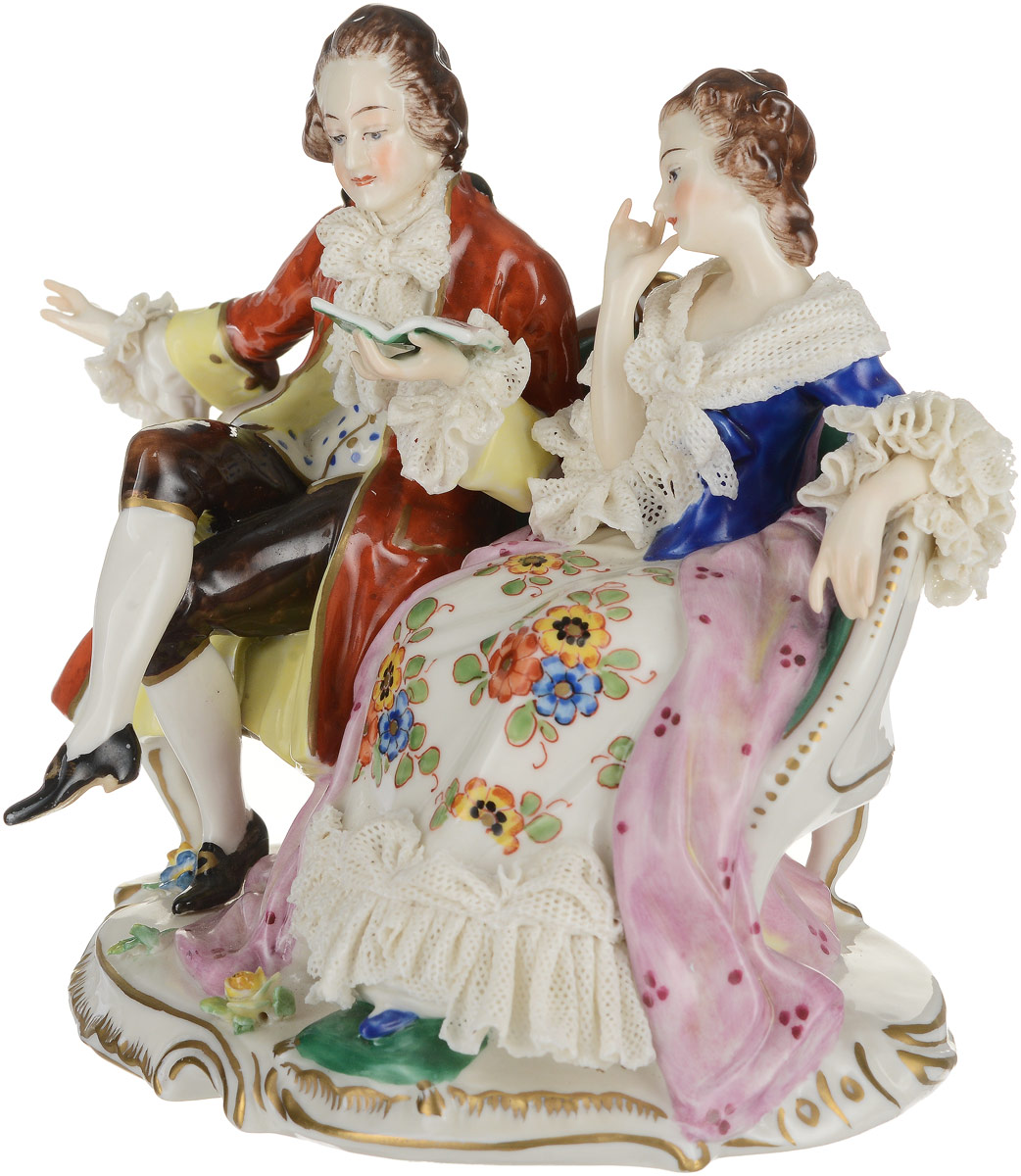 Статуэтка "На уроке". Ажурный фарфор, роспись, золочение, ручная работа. Высота 14 см. Германия, 1940-е гг.