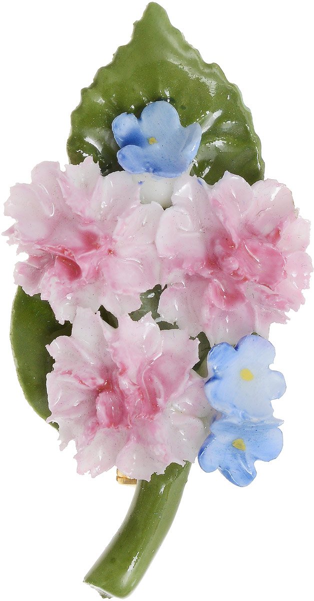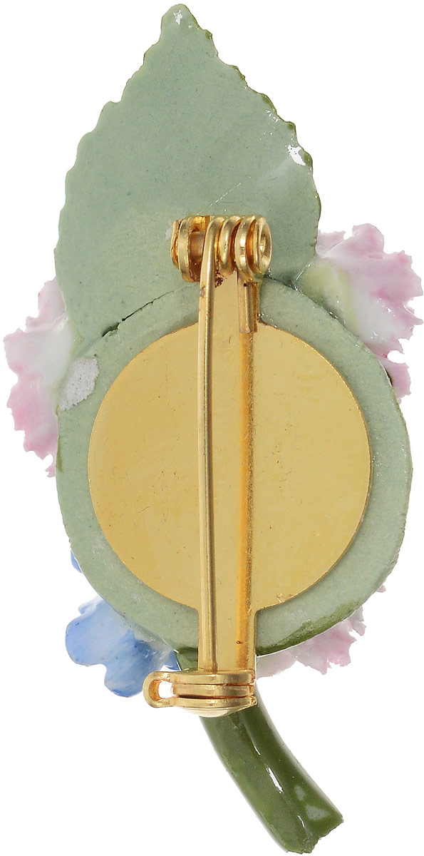 Брошь "Гвоздики и незабудки". Фарфор, роспись, бижутерный сплав золотого тона. Aynsley, Великобритания, вторая половина ХХ века