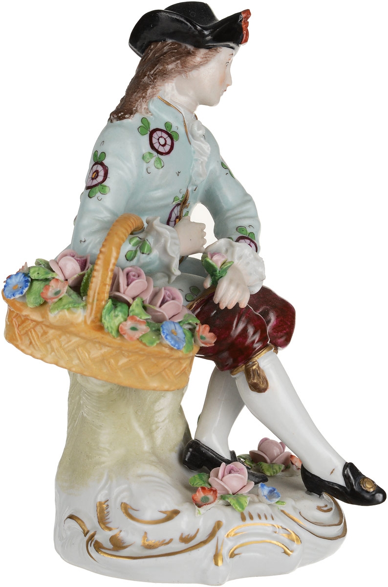 Sitzendorf. Статуэтка "Юноша с корзиной цветов". Фарфор, роспись, золочение, ручная работа. Высота 14 см. Sitzendorf, Германия, 1960-е гг.