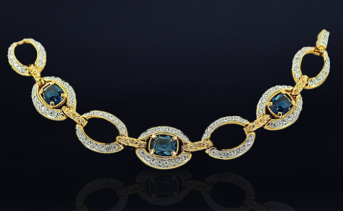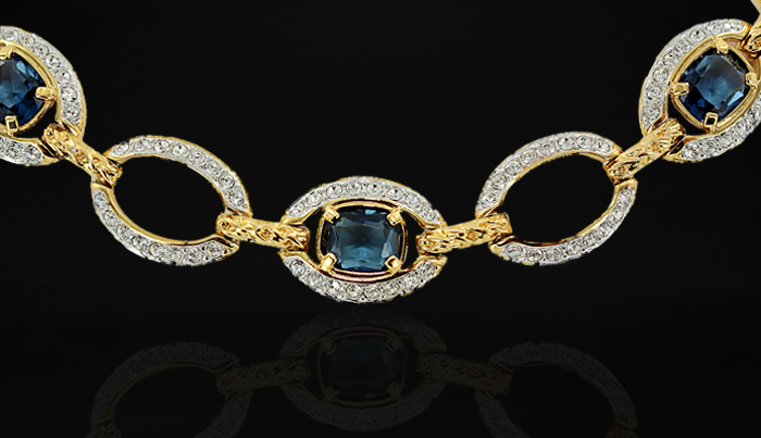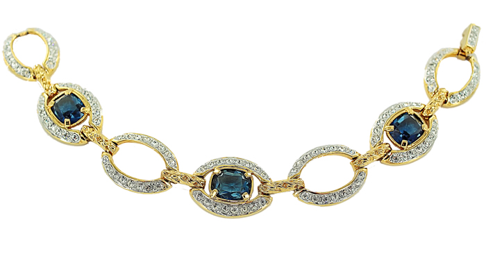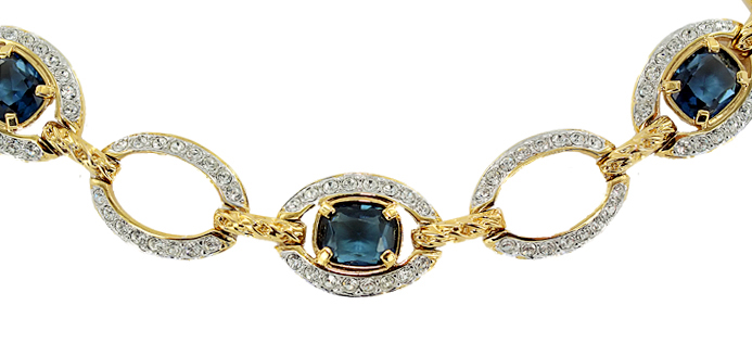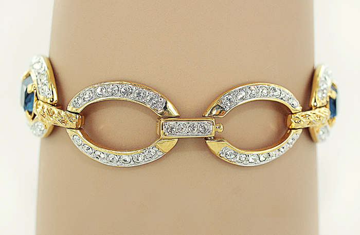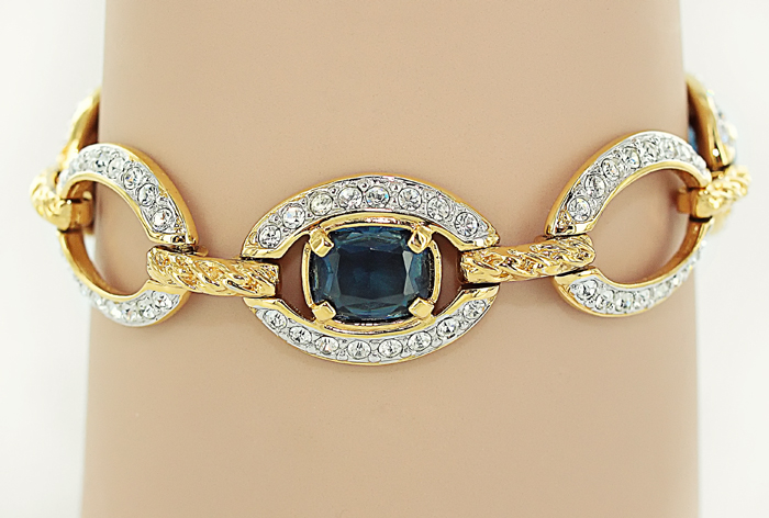 Браслет "Сапфир" от Swarovski, кристаллы Сваровски, бижутерный сплав золотого тона. США, 1990-е годы