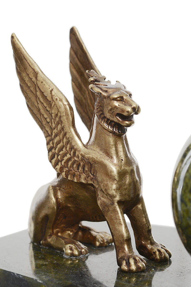 Часы настольные "Грифон", авторская работа. Натуральный змеевик, бронза, полировка. Ручная работа. Россия