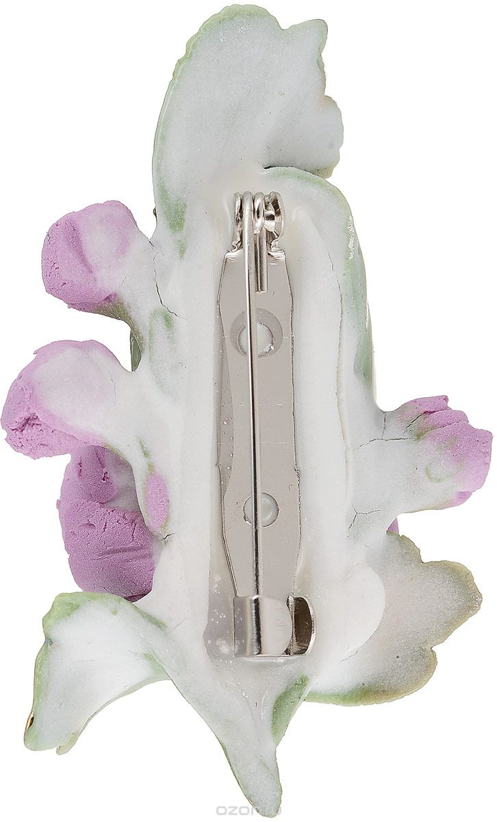 Брошь "Сиреневый пион". Фарфор, роспись, ручная авторская работа. Россия