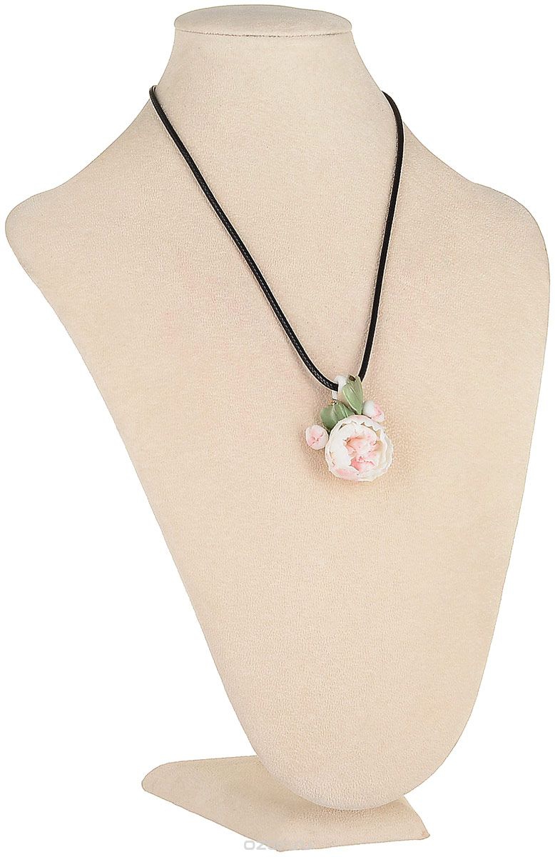 Кулон на шнурке "Пион". Фарфор, роспись, шнурок, ручная авторская работа. Россия
