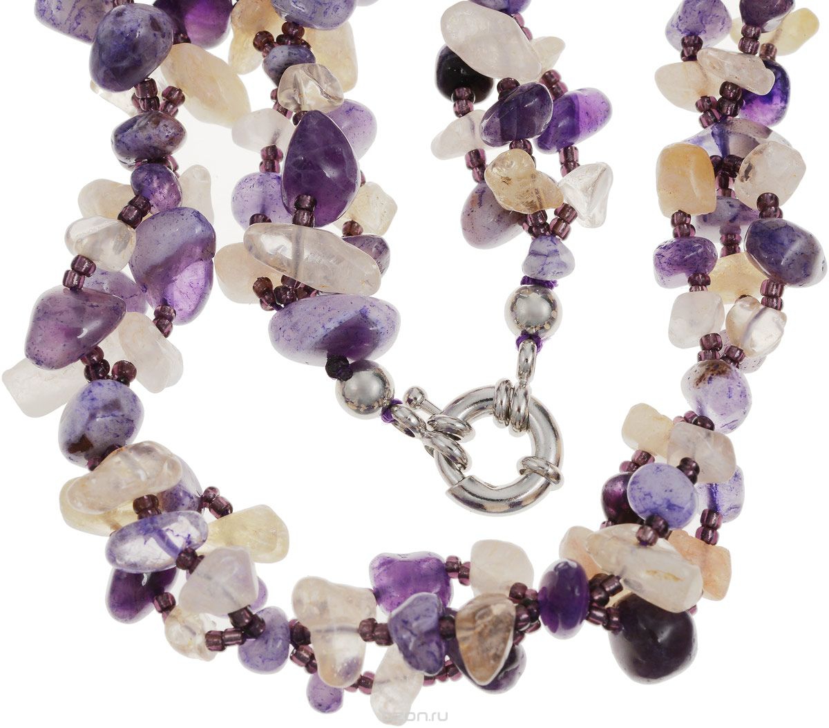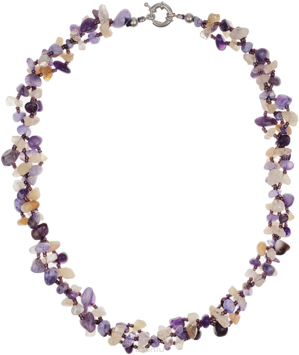 Бусы "Лаура". Натуральный аметист, цитрин и бисер. Индия