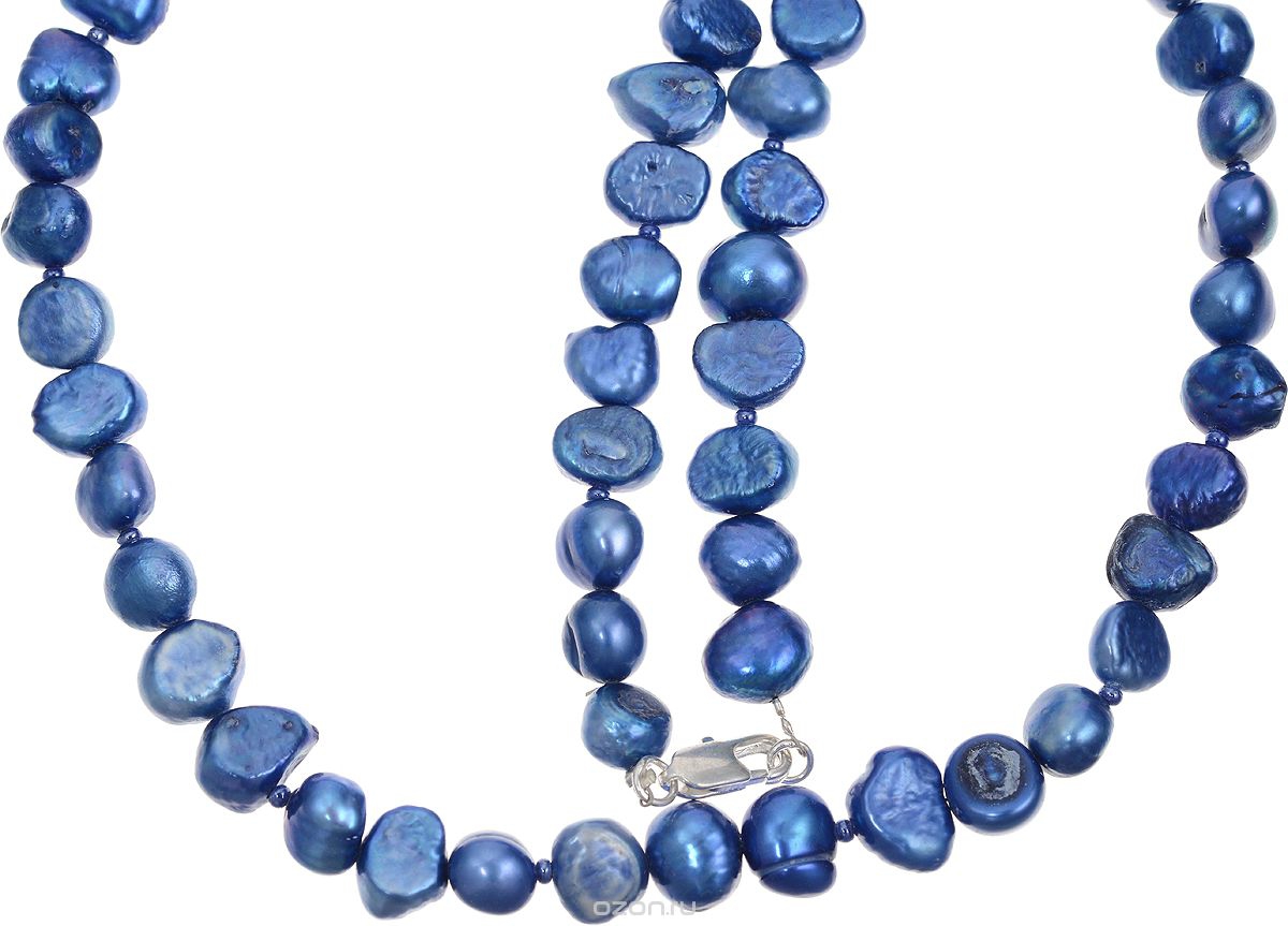 Бусы "Санта-Лючия". Натуральный тонированый речной жемчуг синего цвета. Индия