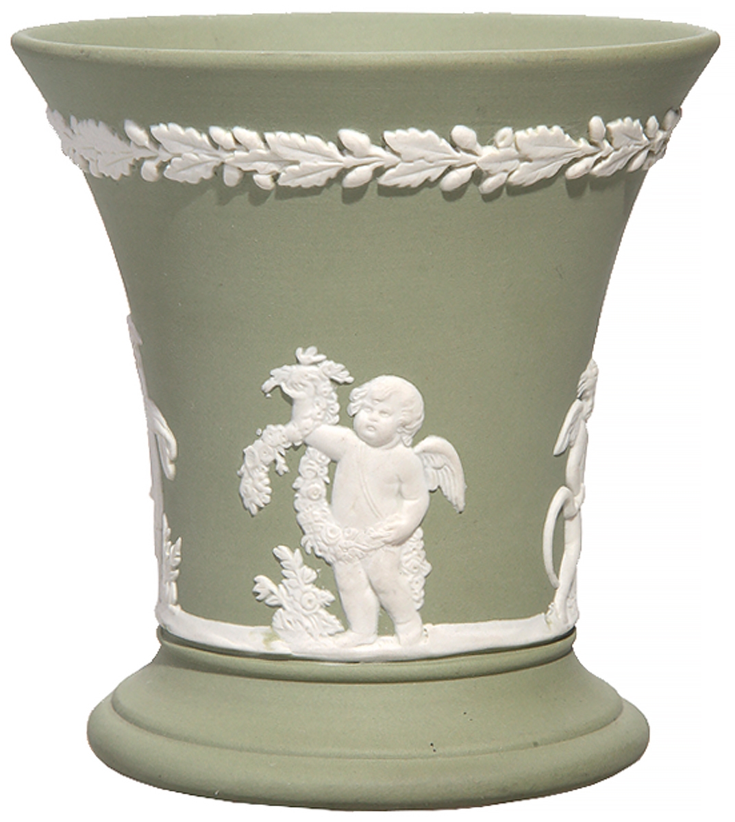 Ваза декоративная "Четыре сезона". Зеленый бисквит, фарфор Wedgwood, Великобритания, винтаж, 1981 год
