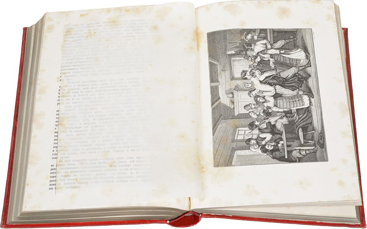 Типографские переплеты. Новодельные кожаные корешки с золотым тиснением. Под переплетом первого и второго тома сохранены оригинальные обложки. Сохранность хорошая.