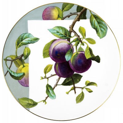 "Сливы", декоративная тарелка. Фарфор, деколь, золочение. Франция (?), середина ХХ века