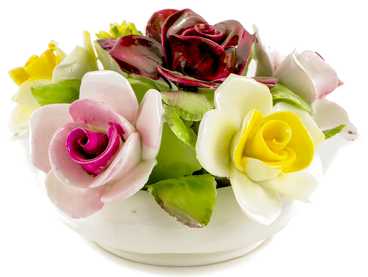 Миниатюрная цветочная композиция для украшения интерьера. Фарфор, роспись, ручная работа. Royal Doulton, Великобритания, 1960-е гг.