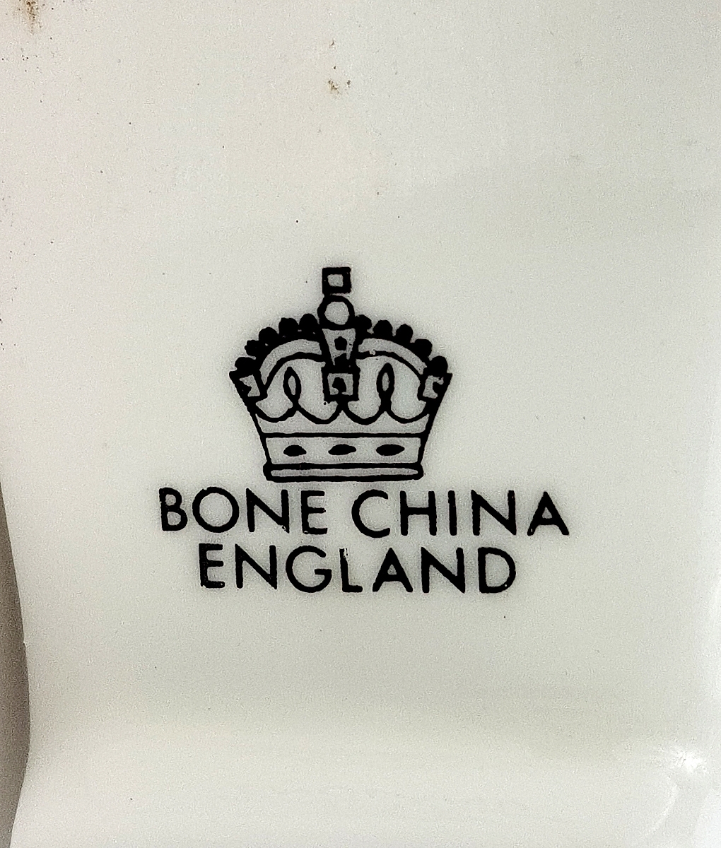 Маркировка: надглазурное клеймо черногго цвета "Bone china. England".