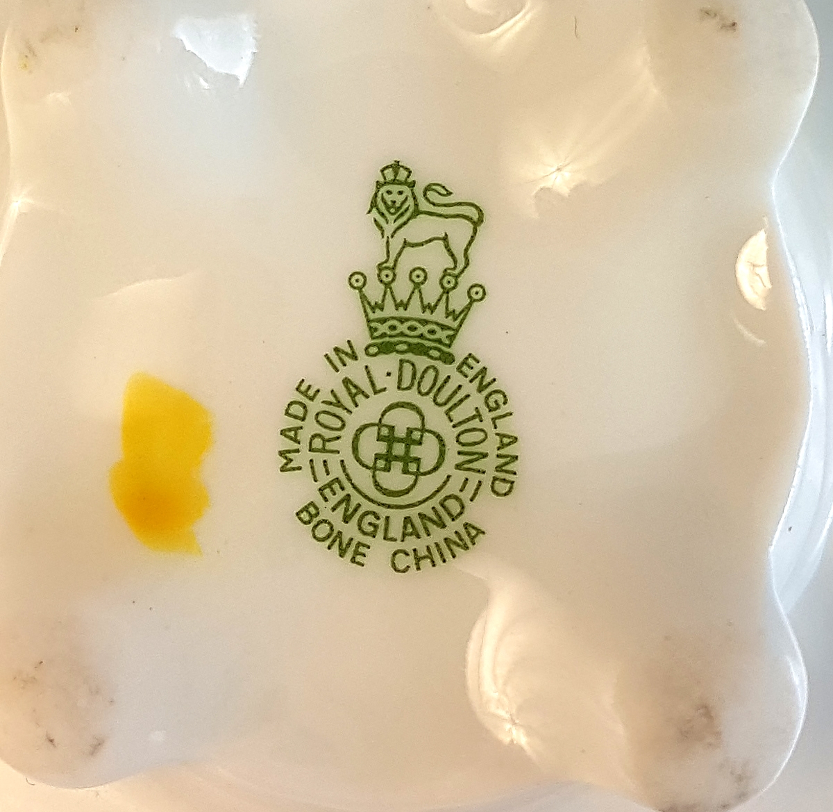 Маркировка: подглазурное клеймо зеленого цвета "Royal Doulton. Made in England. England bone china".