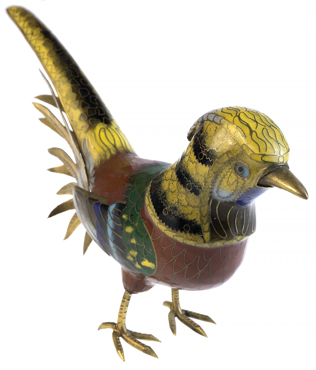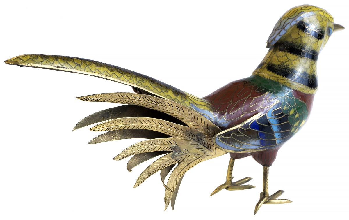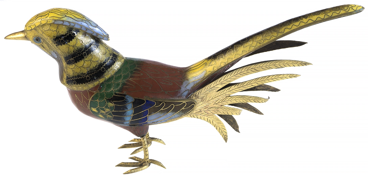 Статуэтка миниатюрная "Фазан". Латунь, эмаль клуазоне, ручная работа. Высота 10 см. Китай, 1940-е гг.