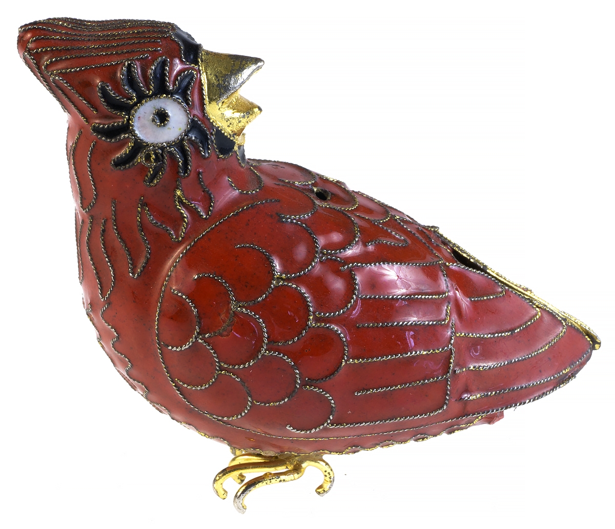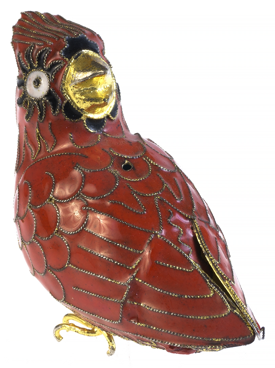 Статуэтка миниатюрная "Красная птица". Латунь, эмаль клуазоне, ручная работа. Высота 7 см. Китай, 1940-е гг.