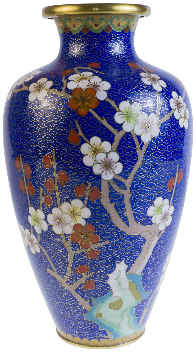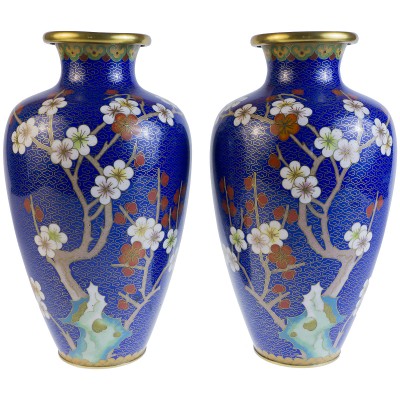 Вазы парные "Сакура". Металл, эмаль клуазоне, золочение. Высота 23 см. Китай, вторая половина ХХ века