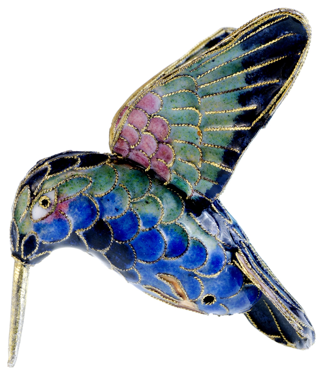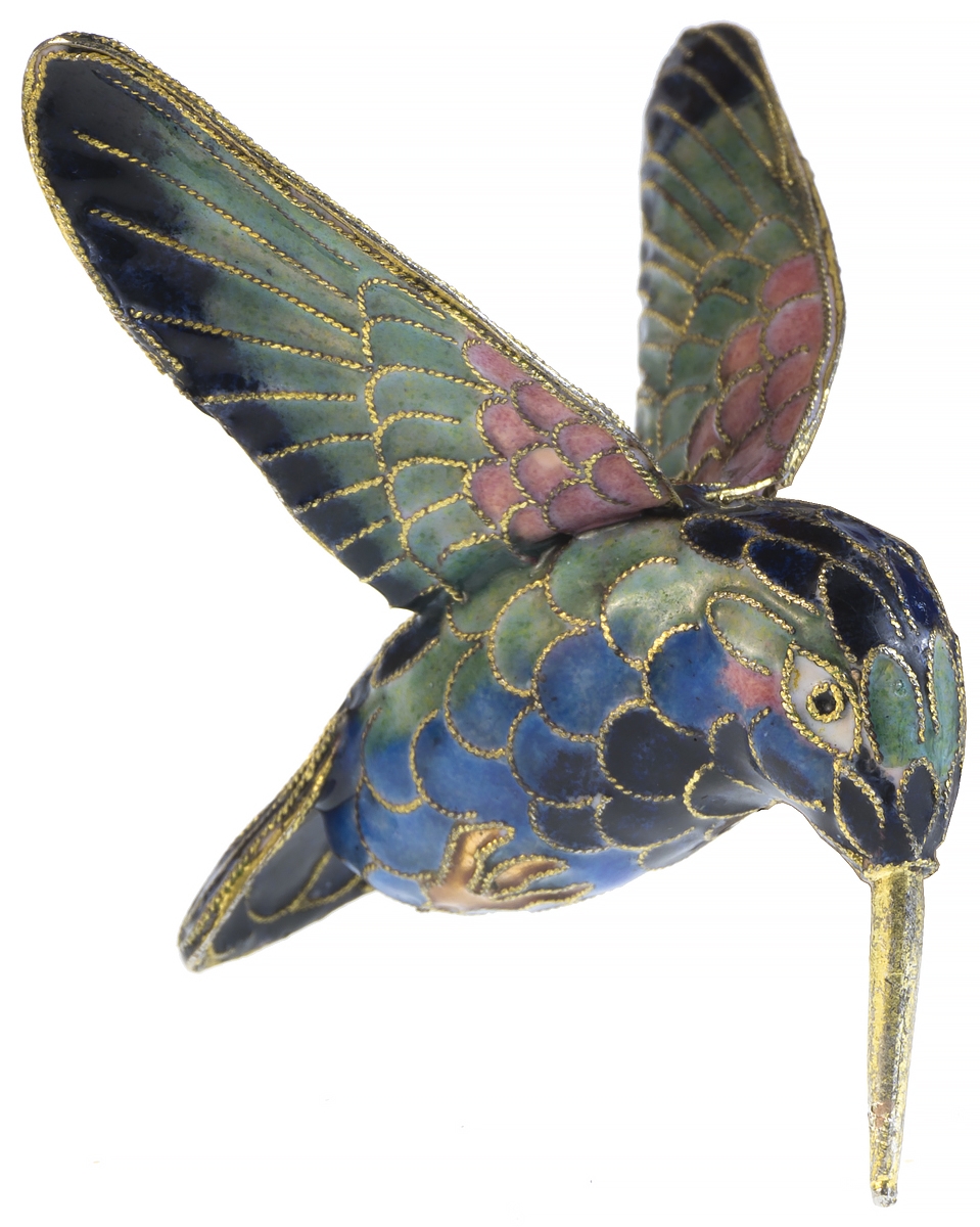 Статуэтка миниатюрная "Колибри". Металл, эмаль клуазоне, золочение, ручная работа. Высота 6 см. Китай, 1940-е гг.