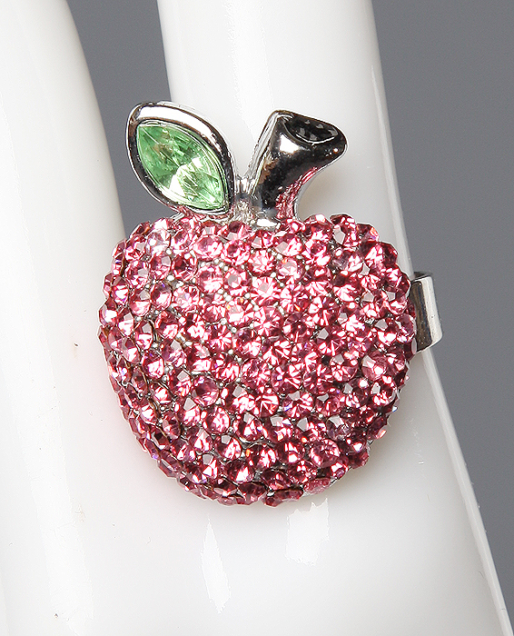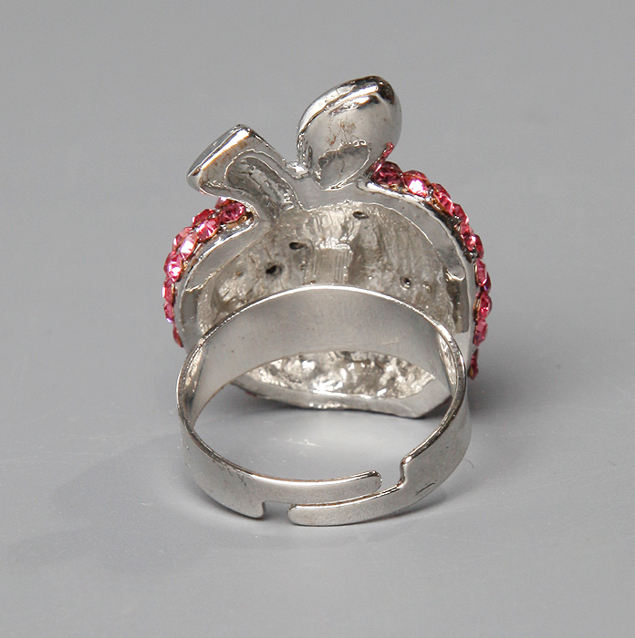 Коктейльное кольцо "Розовое яблоко", сверкающие розовые стразы, кристалл, бижутерный сплав серебряного тона. Гонконг, 2010 год