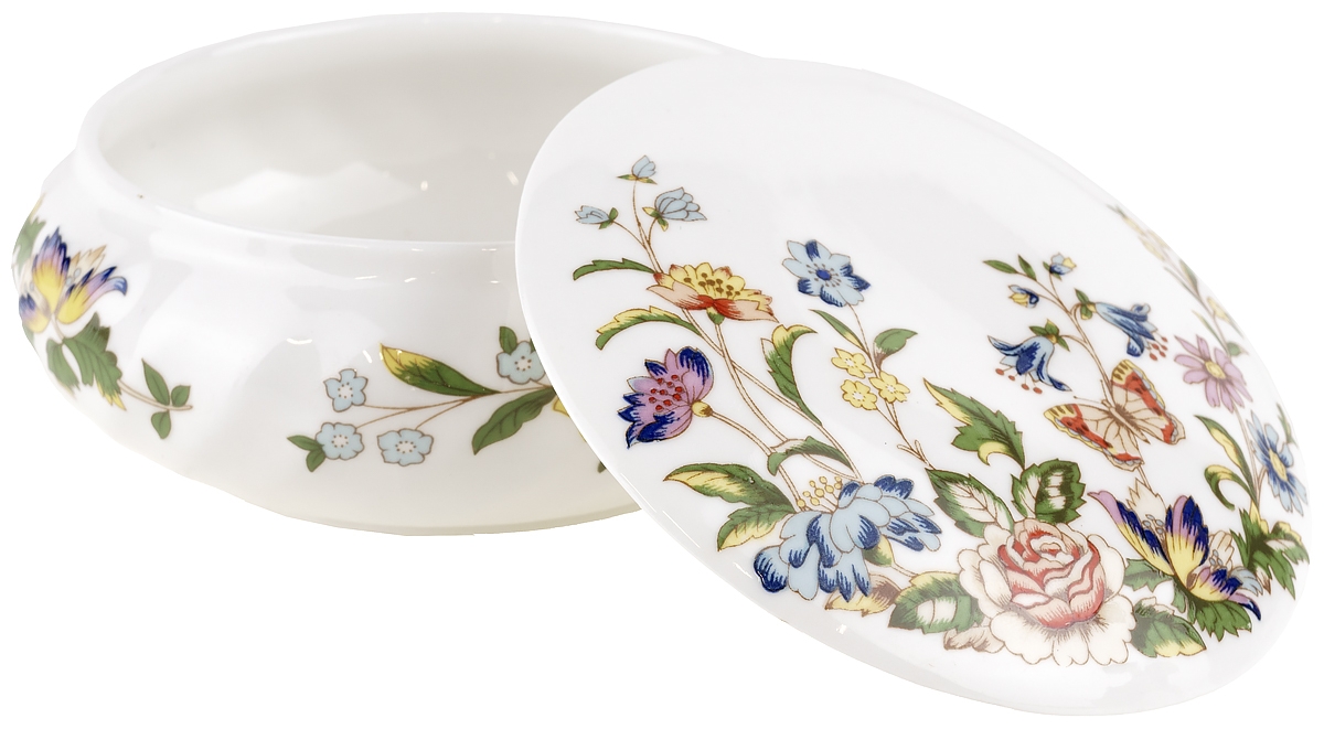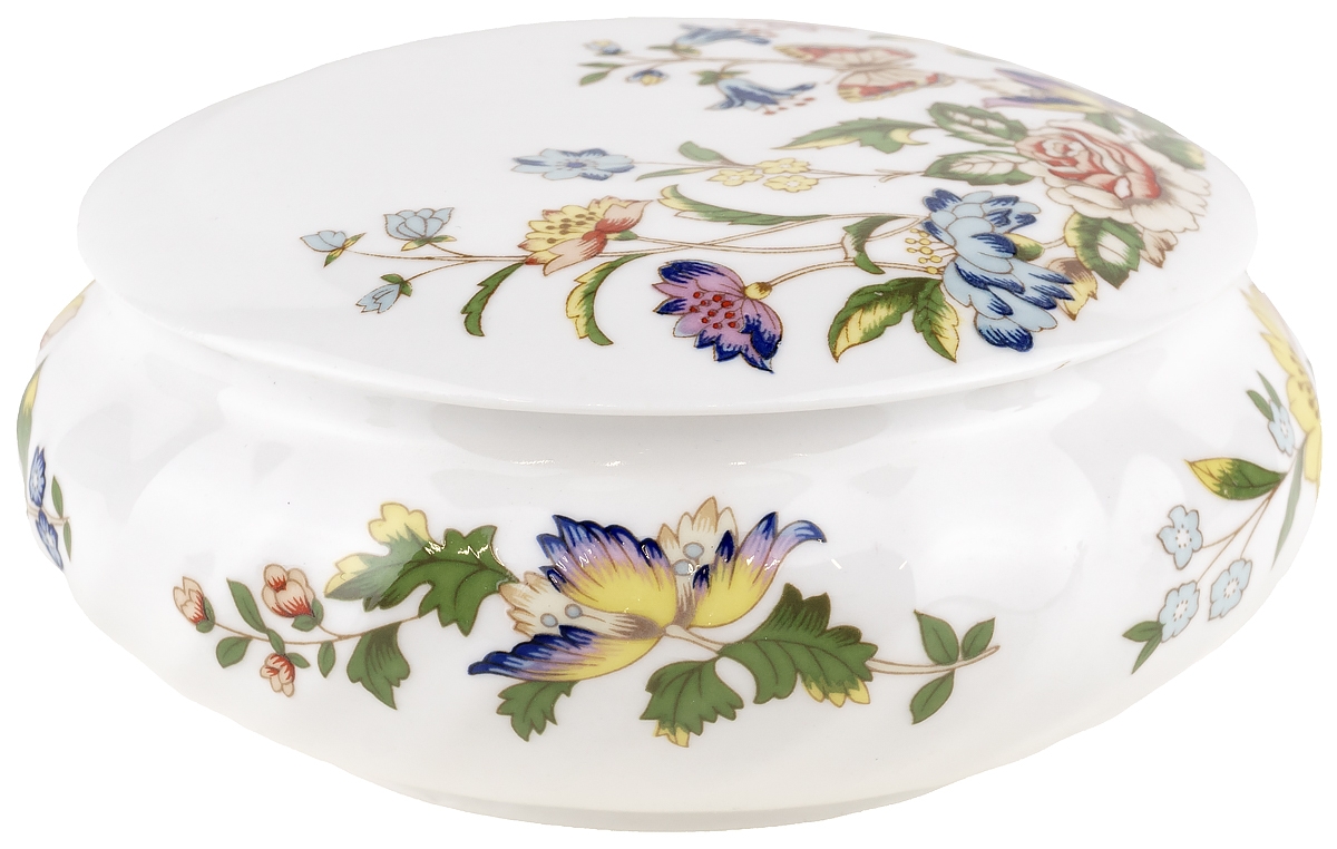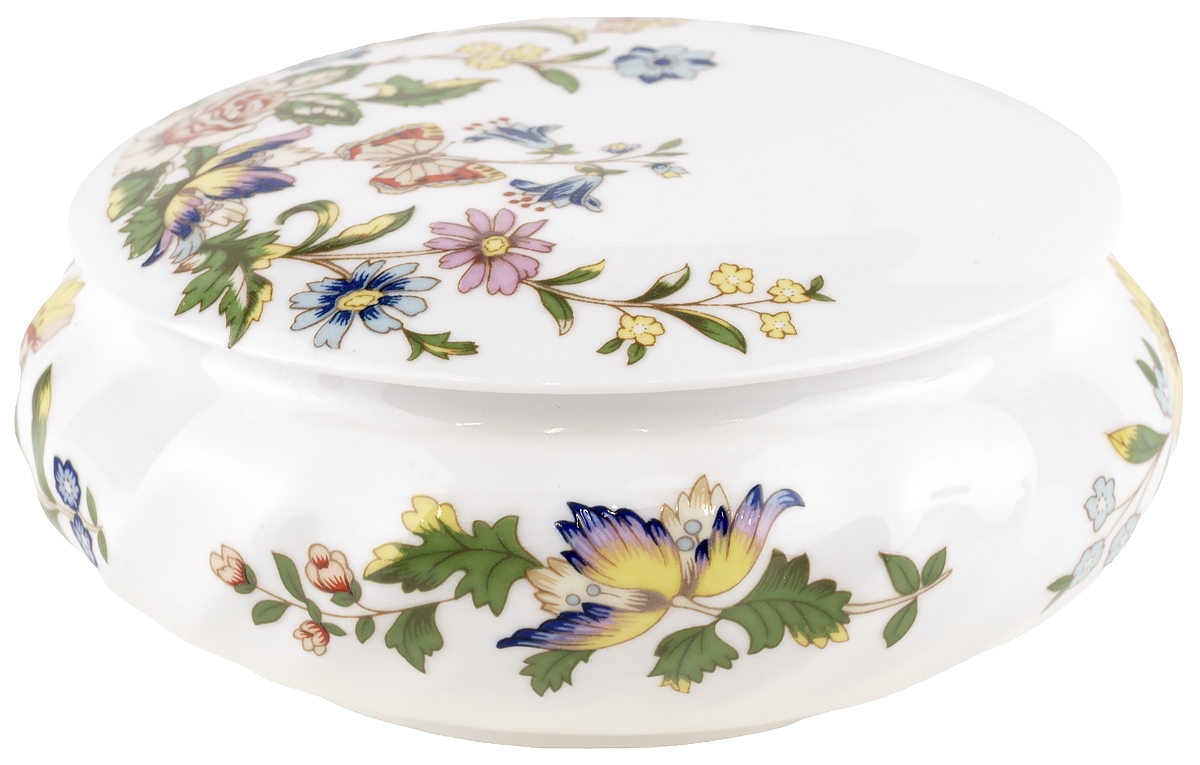 Шкатулка круглая "Дачный сад" . Фарфор, Aynsley, Великобритания, начало ХХ века, диаметр 9,5 см