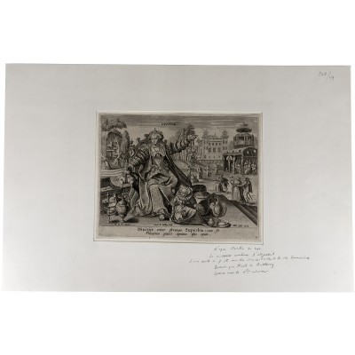 Старинная резцовая гравюра-аллегория "Богатство" в паспарту из белой плотной бумаги.