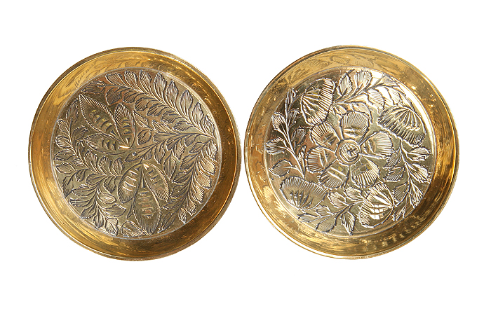 Пара миниатюрных металлических тарелочек. Латунь, гравировка. Индия, середина ХХ века