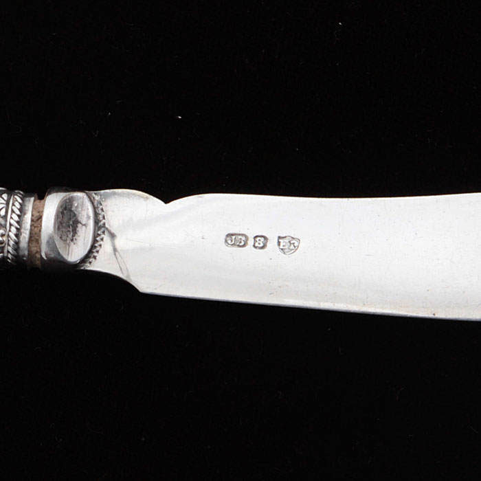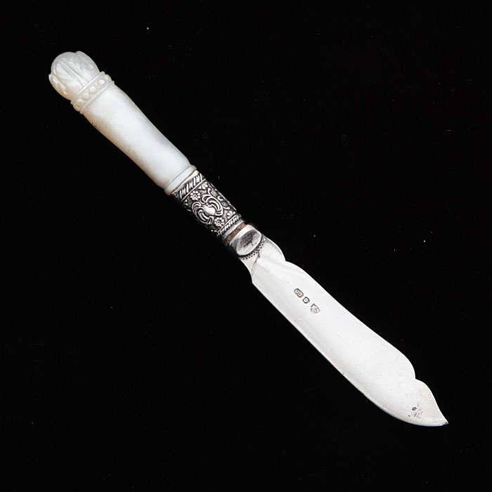 Нож для масла с перламутровой ручкой. Металл, серебрение, гравировка, резьба, перламутр. Западная Европа, начало ХХ века