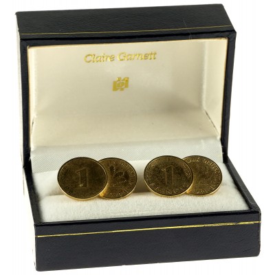 Винтажные запонки "Пфенинг". Металл золотого тона.Германия, 1970-е гг.