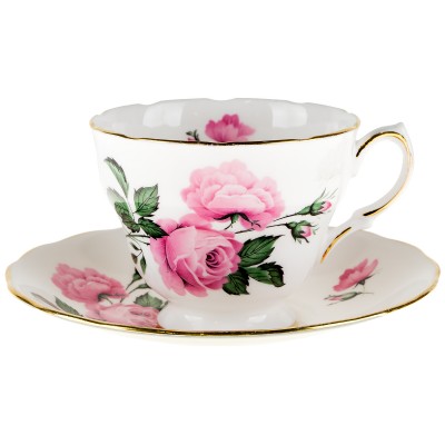 Чайная пара "Махровые розы". Фарфор. Royal Vale, Великобритания, вторая половина ХХ века